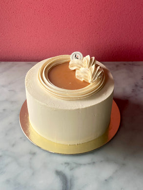 Vanilla Salted Caramel Gateau: Vanilla cake, chocolate ganache filling, salted caramel drizzle, salted caramel buttercream.